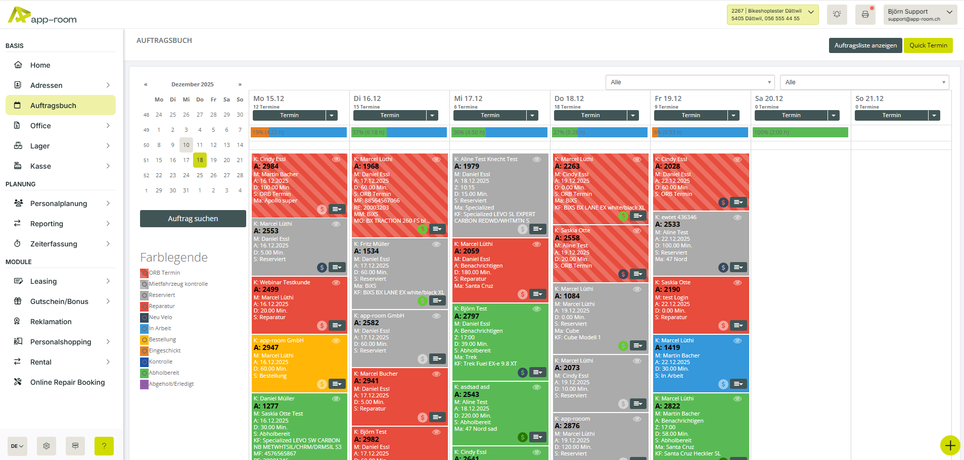 Mit dem Auftragsbuch behältst du den Überblick über die Werkstatt und erkennst, wo noch freie Ressourcen vorhanden sind. Dank der farblichen Markierung der Aufträge siehst du, welche Aufträge bereits erledigt sind und welche nicht. Die praktische Notizfunktion hilft dabei, nichts mehr zu vergessen.